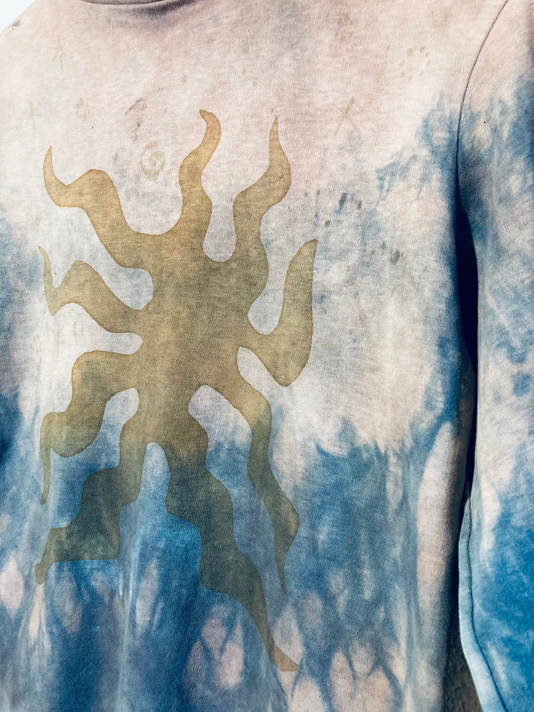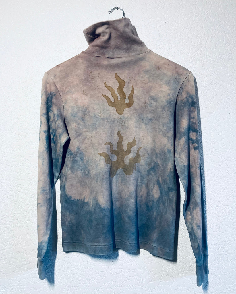 Soft cotton turtleneck with screen printed STAR-BEING on front, two smaller stars on the back. Dyed in indigo and madder root.